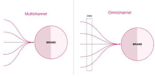 In a multichannel architecture, each channel communicates independently with the store, be it the ecommerce, physical stores, call centers, social media, etc. When a customer interacts with one of these channels, the store has no knowledge at all of who that customer is.