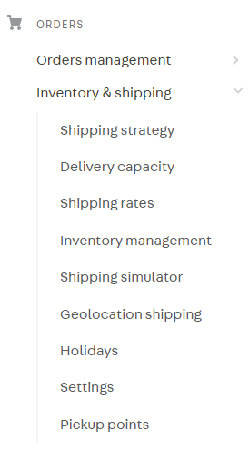 - Shipping strategy: Basic settings for the store's shipping structure.