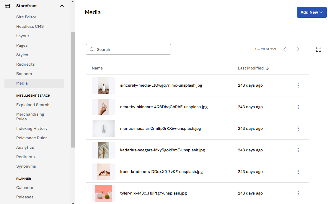 Media is the module where you manage store media files, such as images and videos.