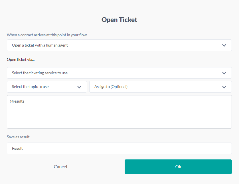 We were able to simulate a flow result with this action card. Creating from scratch, without the need for input or going through a decision card. Therefore, just choose the name of the flow result, enter its value and, if you want, a category. In addition, we can update the value of some existing flow results. To understand a little more about flow results and their structures, visit the results section in the decision cards article