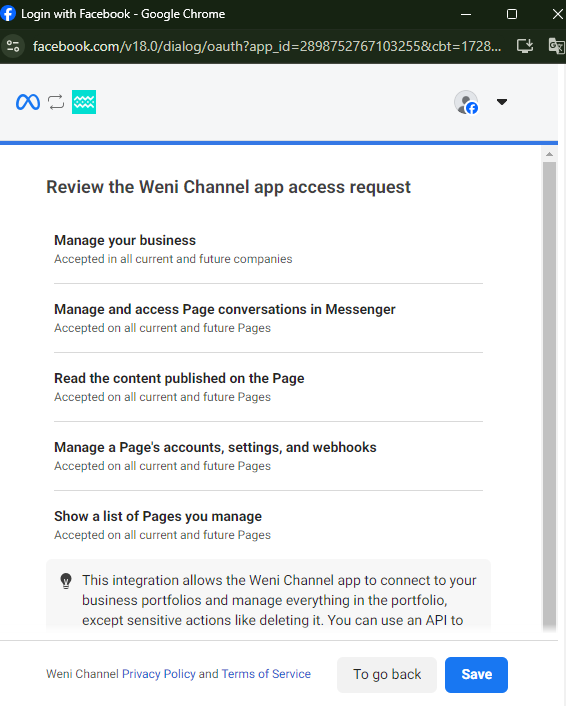 If you need to log into the platform, you will be asked to give permissions to allow. You should allow all to complete the process. Then, you will be directed back to the previous step.