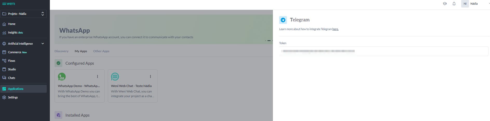 All set! You’ve created your new chatbot and received your token! Copy and save it for use on the Weni Platform.