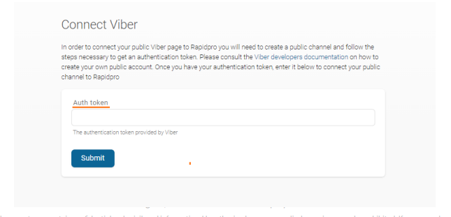 After that, you will see a short description of the channel. The only requirement to connect Viber there is an Authorization token (called App token by the Viber team).