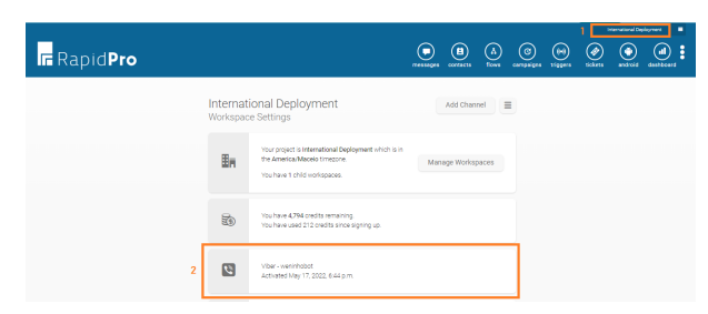 The Viber channel was created, but to have it published and available for all your public, some steps are required by the Viber support team. The first step required is to provide a Welcome message. To add one, go to your Workspace settings and open the Viber Channel settings.