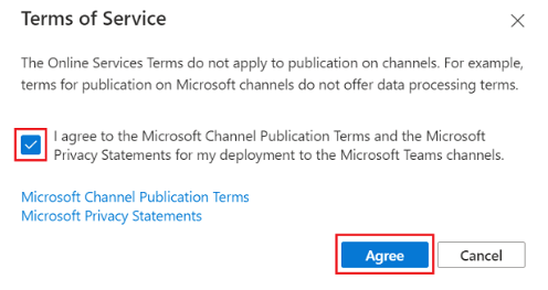 - Select the check box to accept the terms of service and select Agree.