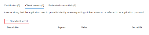 - In the Client Secrets section, select New Client Secret. The Add a Client Secret window appears.