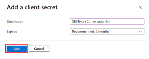 - Enter a Description and a period for the expiration of the secret, then select Add.