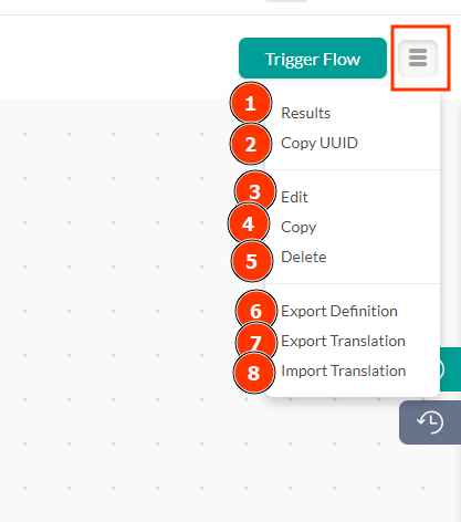- Export Definition: Option that redirects you to the flow export page. For more information, visit the article on flow export and import.
