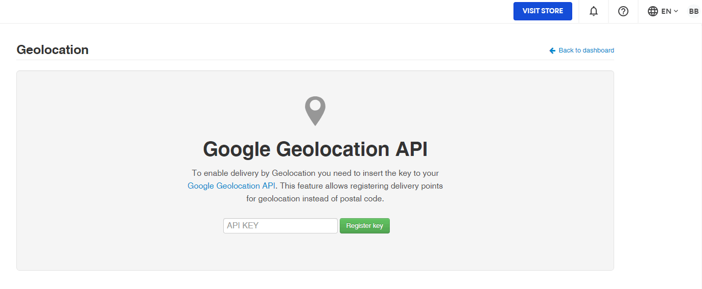 Once the API Key has been included in the Checkout configuration, the geolocation will be visible in your store checkout.