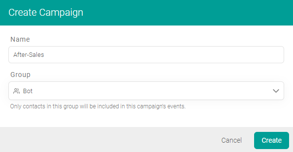 • Give a name for your campaign, choose a group to which the messages will be sent, and a new window will open.