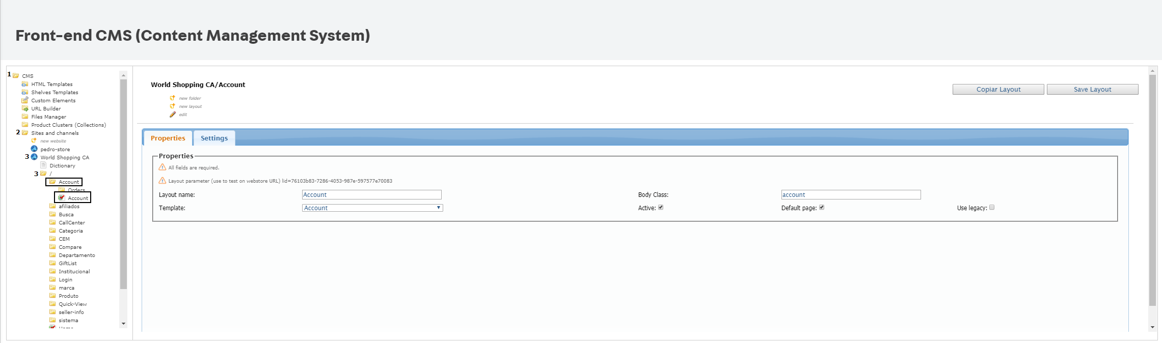 The main function of the CMS is to allow you to manage the layout of your store. It is here that the Directories and Templates that will bring your e-commerce to life will be created.