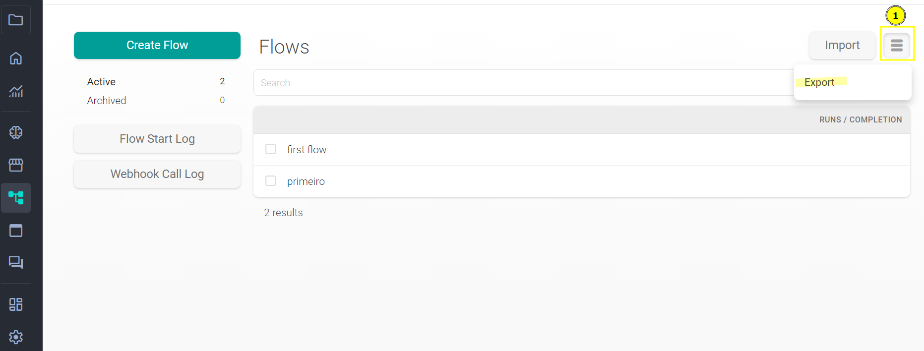 To export the flows you want, just select the ones you are interested in and then press the export button at the bottom of the page, it will generate a .json file that you can use in the next step, the import.