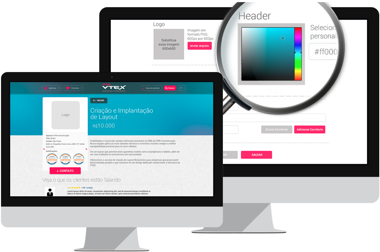 In the first step there are some fields that deserve your attention, such as the header color. Where will it be applied? On your company’s page on the VTEX Store, as it is demonstrated in the image.