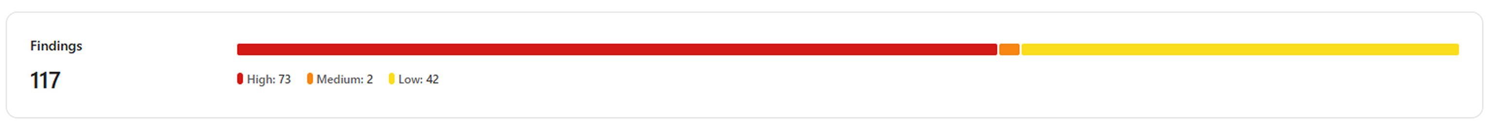 The top bar displays the total number of findings and the number of threats by severity level (high, medium, or low).