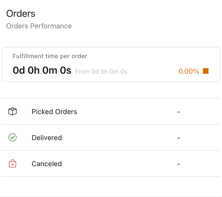 In this section, you will see information on the overall order performance and the average fulfillment time for each order.