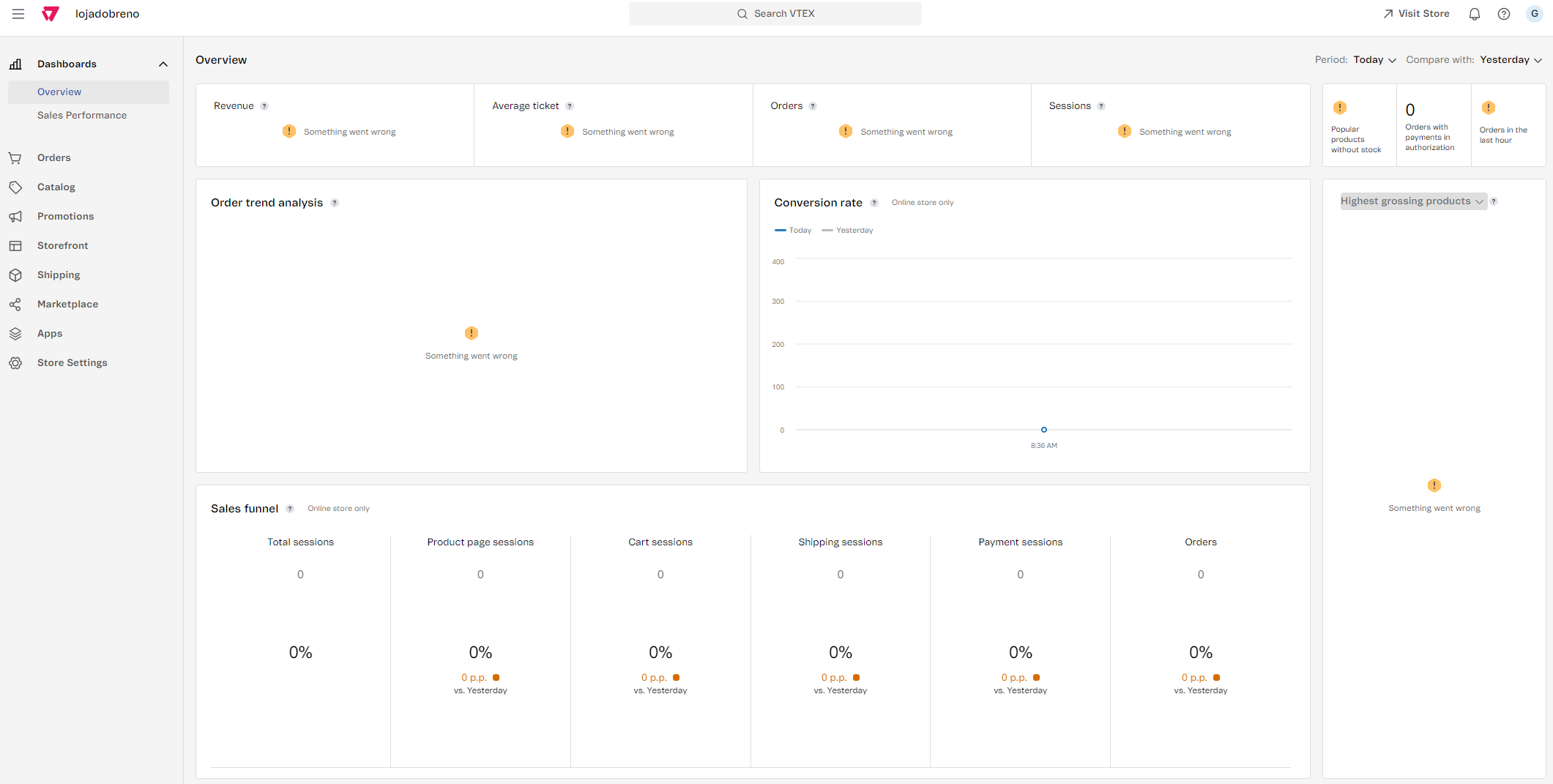 1. In the VTEX Admin, go to Dashboard > Overview.