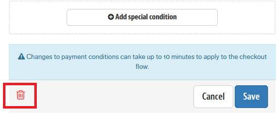 Any changes in payment conditions may take up to 10 minutes to appear at your store's checkout.