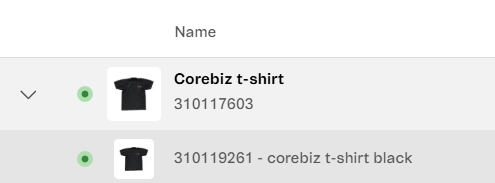 In the example below, the product "Corebiz t-shirt" is associated with the SKU "corebiz t-shirt black", whose ID is 310119261: