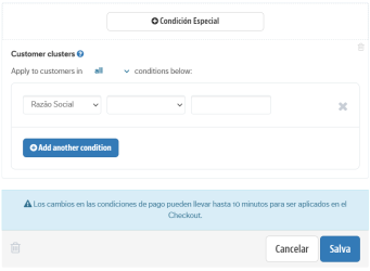 En este caso, el sistema segmenta a los consumidores que corresponden a la ubicación de "São Paulo" y aplica la regla de plazo y pago en cuotas a esas personas.