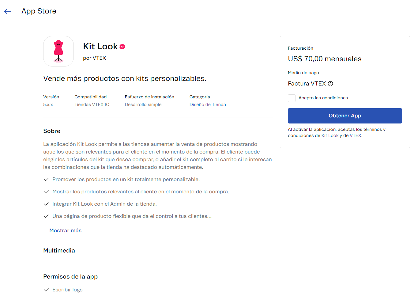 Antes de comprar una aplicación, recomendamos consultar los términos y condiciones del proveedor y los términos de VTEX a través de los enlaces disponibles debajo del botón Obtener app.