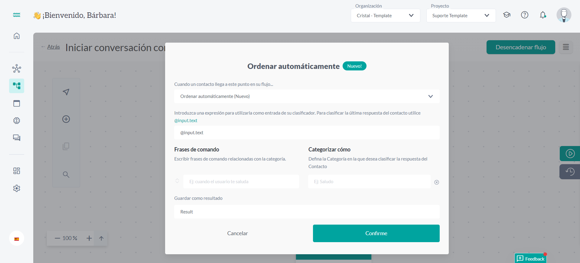 Cuando hablamos de contexto, tenga en cuenta que siempre que use Zero Shot, debemos configurar las Frases de Comando. Estas frases instruir án a la inteligencia para clasificar sus intenciones (llamadas ""Clases"") de acuerdo con las reglas que usted defina.