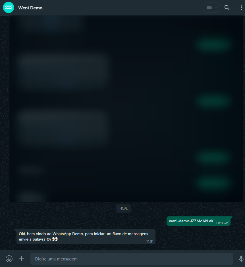 1. Al abrir WhatsApp Web, verás un código único que es la identificación de tu bot. Inicia la conversación.