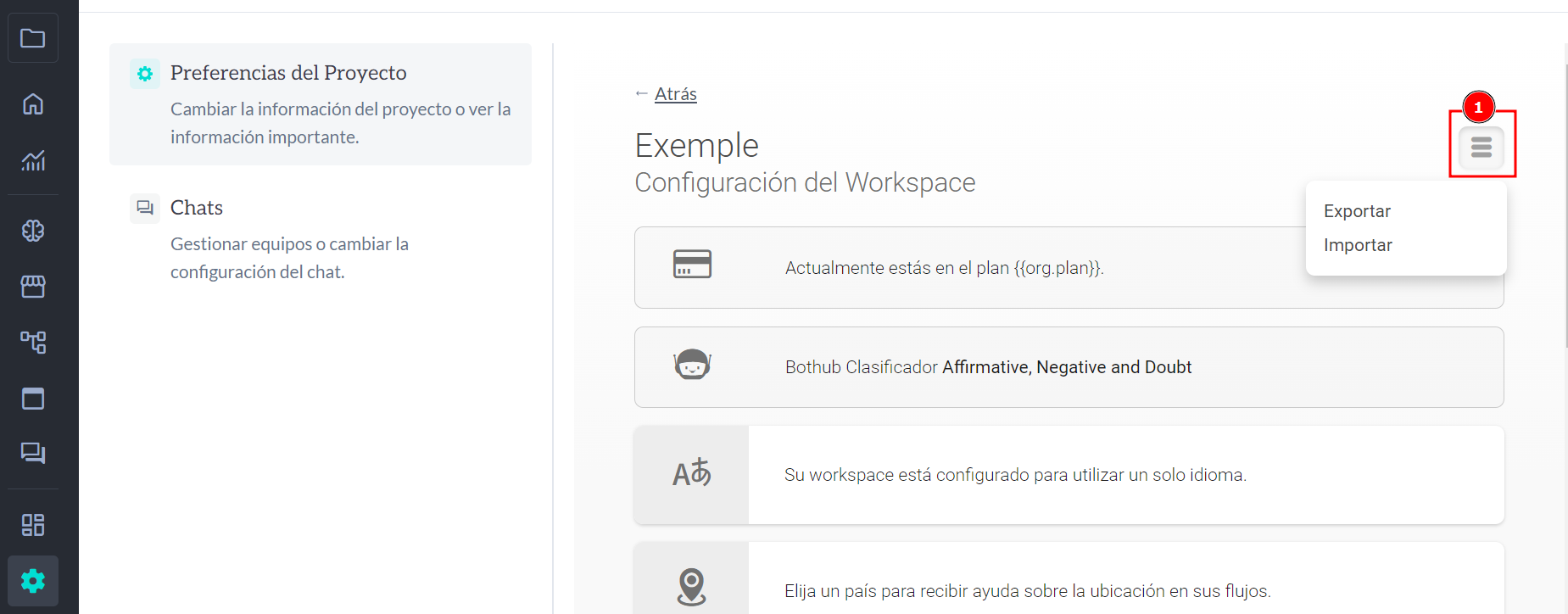 1. Segundo Camino: A través de Configuraciones Generales de la Organización Para acceder a la página de exportación desde las configuraciones generales de la organización, simplemente ve al menú de opciones y haz clic en el botón ""Exportar"".