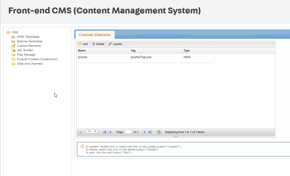 Para evitar el trabajo de añadir manualmente el mismo contenido varias veces en cada página, tenemos el área de Custom Elements.