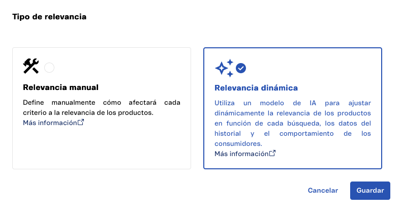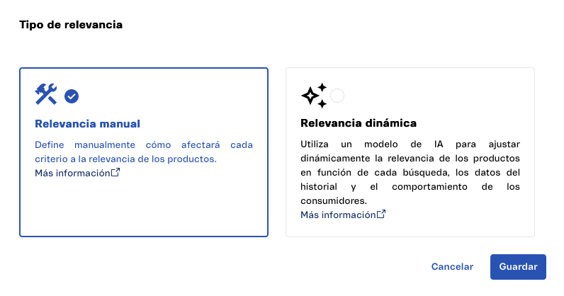 Para configurar la relevancia manual, consulta el artículo Relevancia.