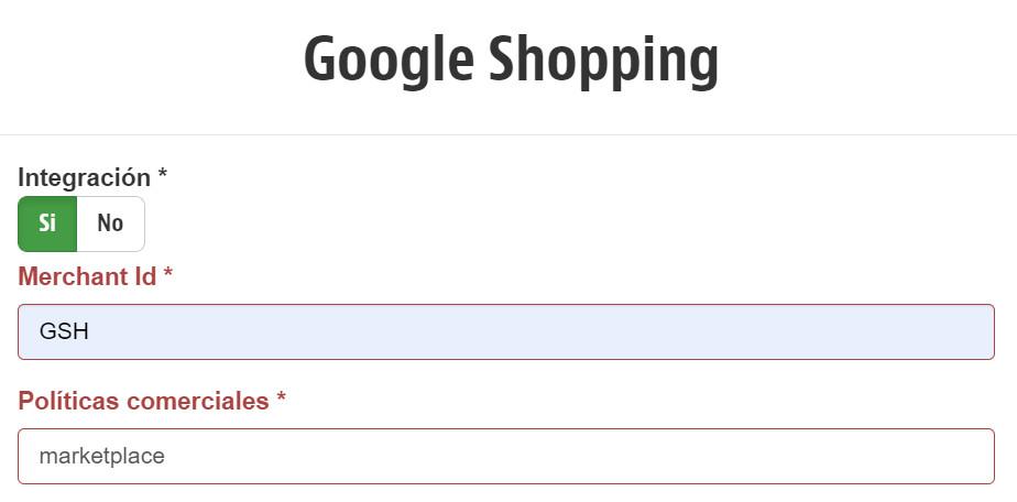 En el ejemplo anterior, la política comercial «Marketplace» se aplica a la integración con Google Shopping.