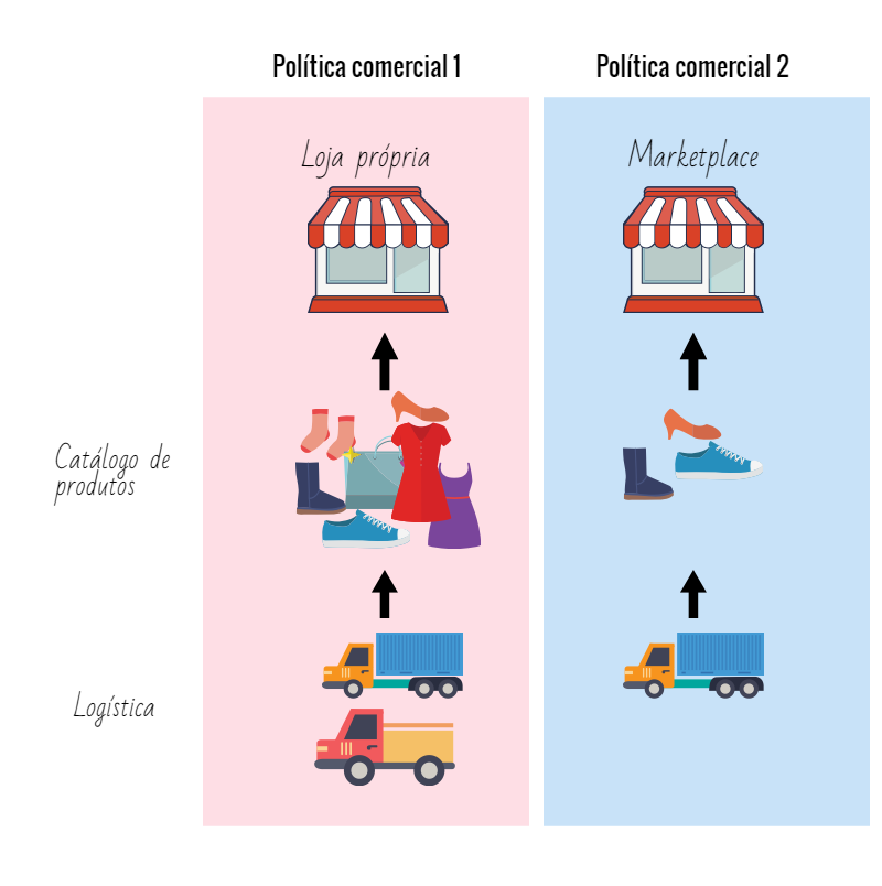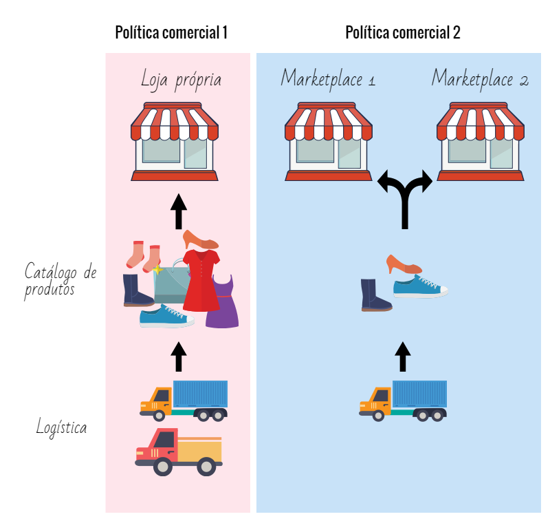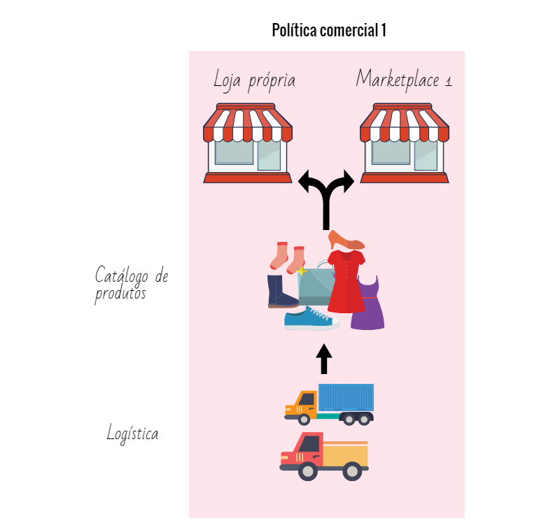 Uma das funções da política comercial é fazer uma diferenciação de catálogo e/ou logística entre os diferentes canais de venda da loja. Ou seja, uma nova política comercial só é necessária quando um desses fatores for diferente entre os canais de venda.