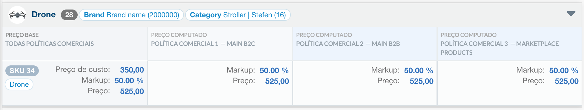 Preço Base de um SKU é o valor calculado através da combinação entre o Preço de Custo e o Markup, a margem de lucro desejada com a venda do SKU. É o preço de referência de um SKU para todas as tabelas de preço.