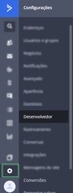 Dentro do painel admin da Active Campaing, acesse Configurações > Desenvolvedor