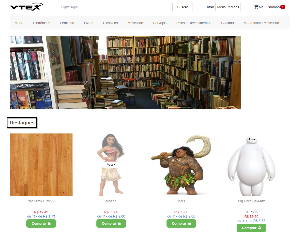 Seguindo o exemplo acima, teríamos o seguinte na loja: