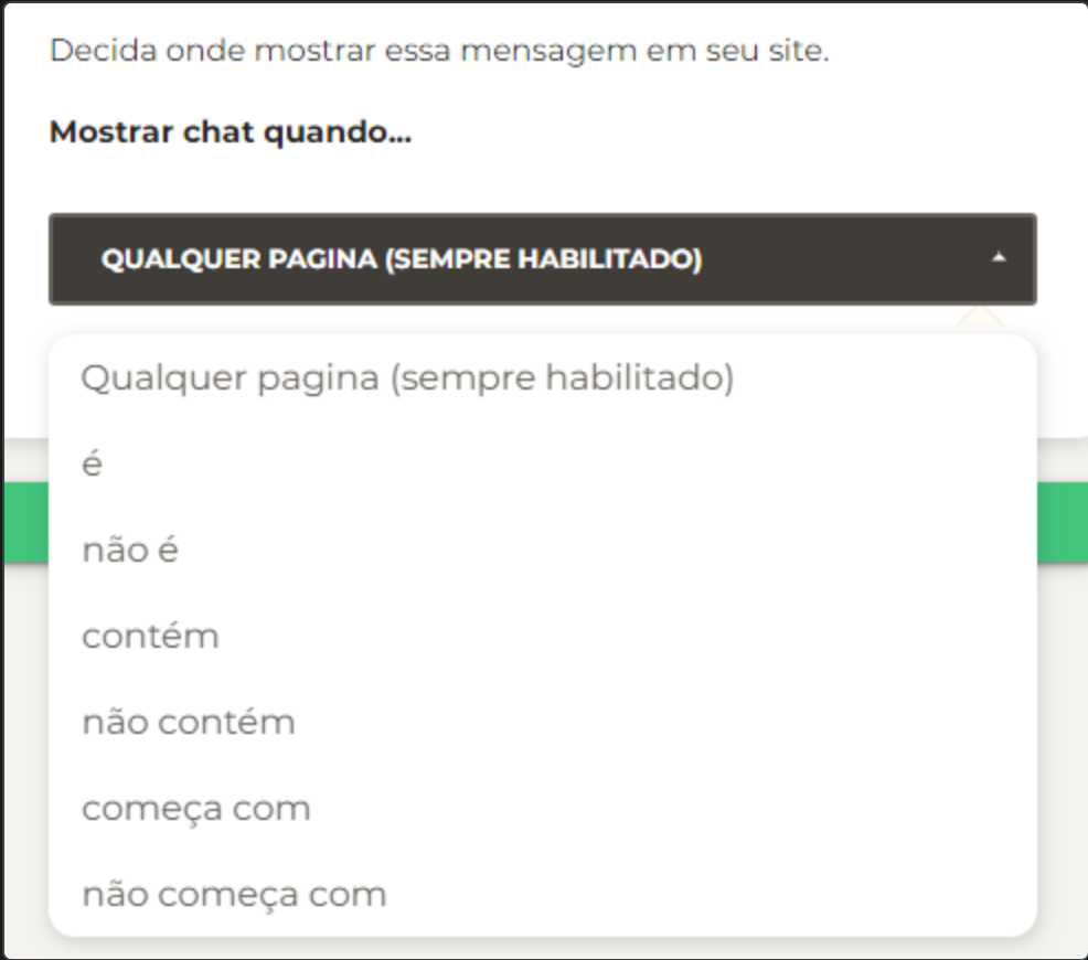 Defina em quais locais do seu site irá aparecer a mensagem ou onde não irá aparecer: