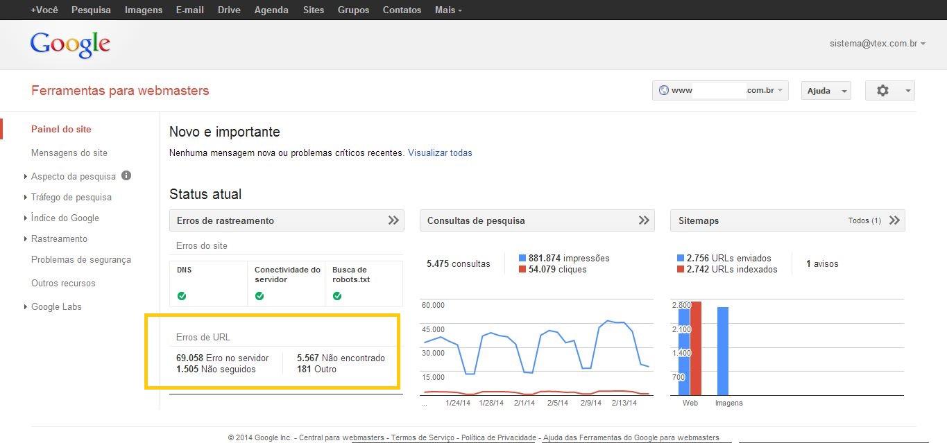 Localizar URLs indexadas pelo Google que estão inativas ou com erros