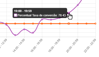 O objetivo é que a taxa de conversão por hora permaneça acima dessa linha de referência.