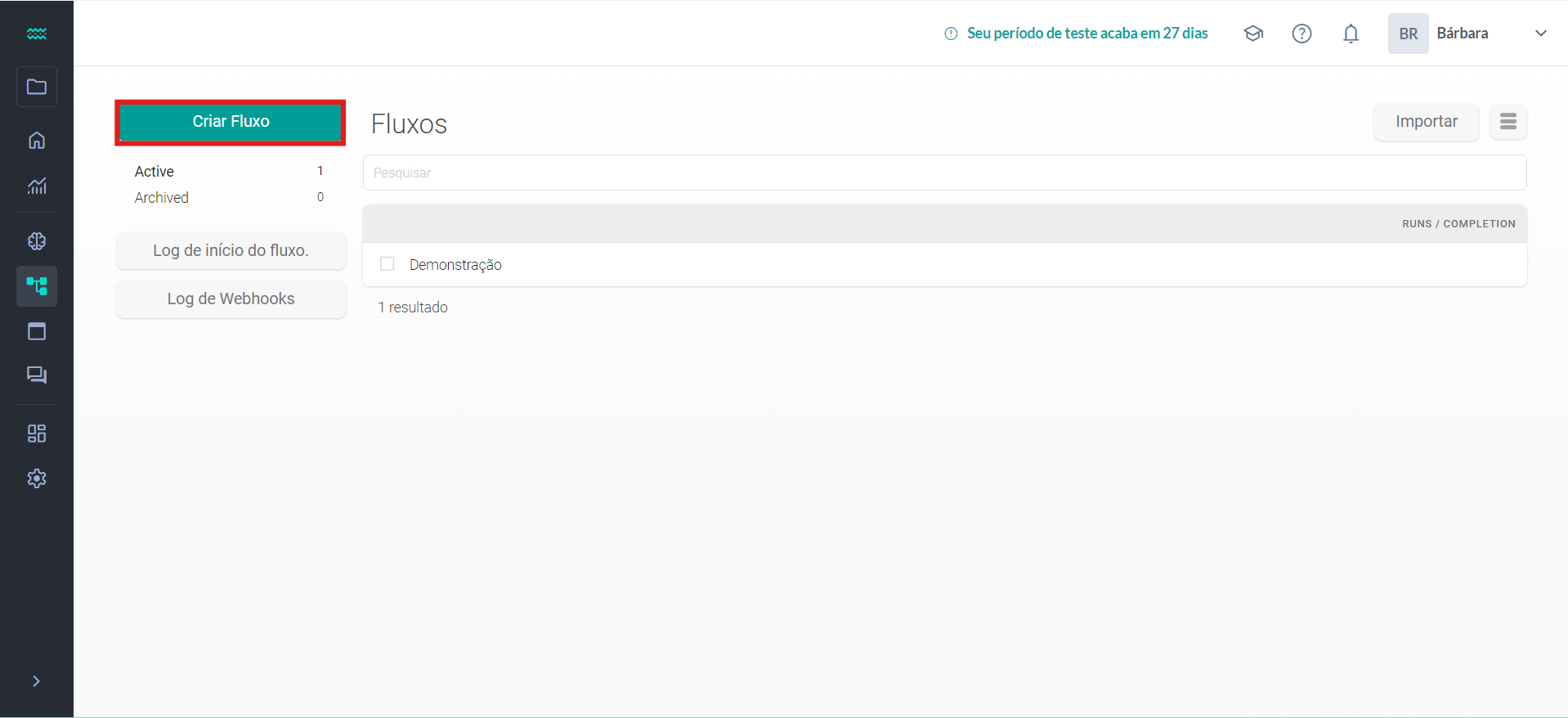 - Primeiro, iremos clicar no botão de fluxos no nosso menu lateral.