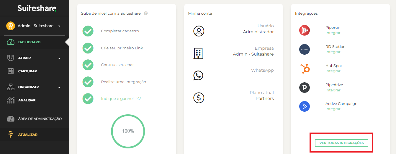 1. No dashboard, clique em Ver todas integrações e em CRM Zen.