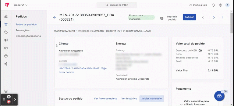 A funcionalidade Importação de Pedidos Amazon DBA está disponível apenas para sellers VTEX Brasil.