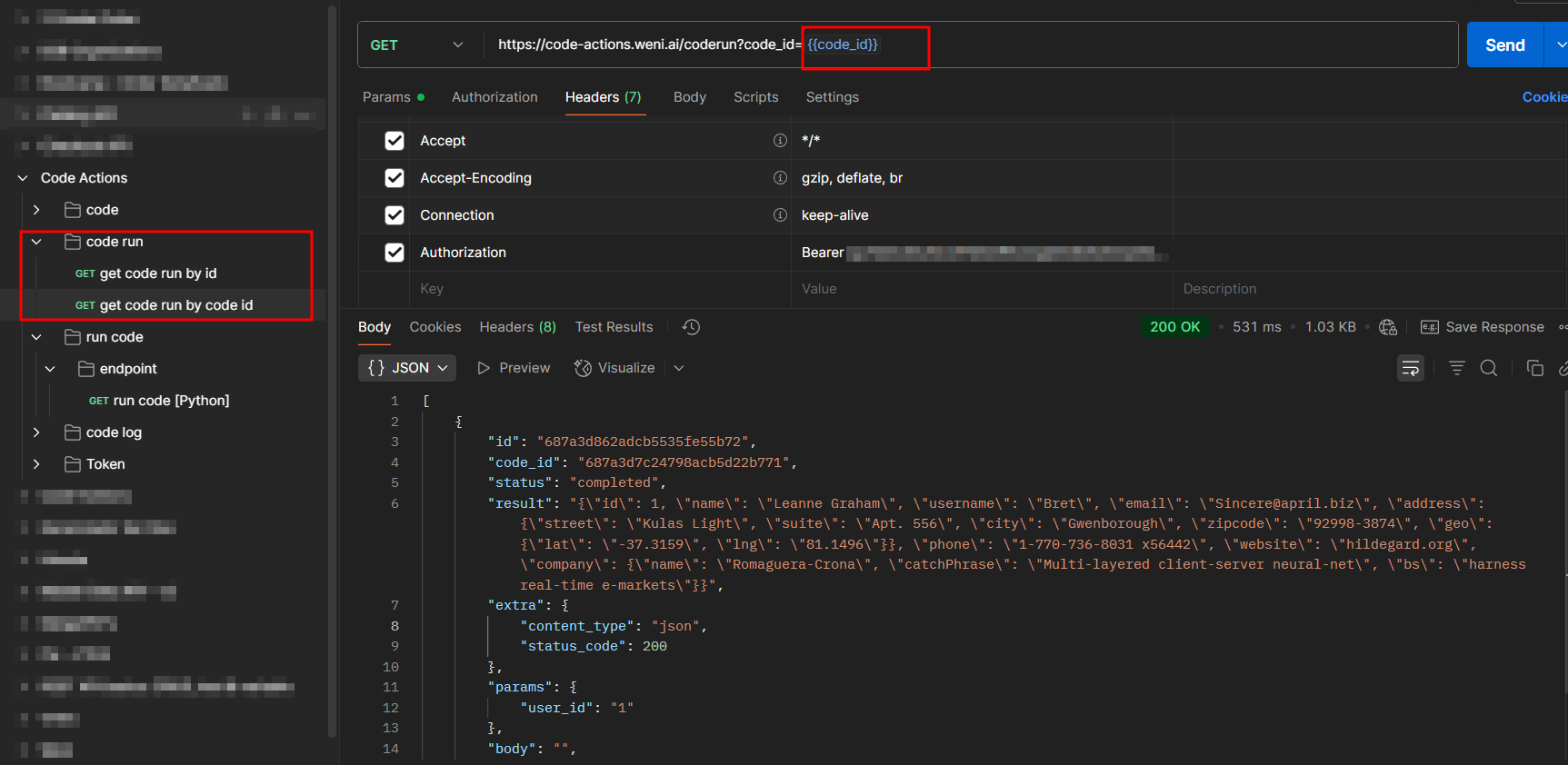 Toda vez que o código é executado, é gerada uma execução de código. Para que você consiga visualizar essa execução, você poderá realizar a request abaixo passando o ID do seu código.