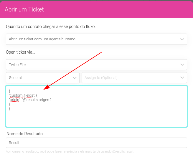 onde o campo origin com seu valor definido como o result origem,
