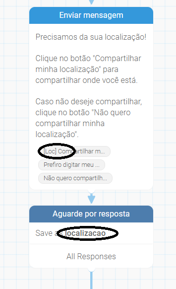 Assim, conseguimos criar um fluxo com suporte para captar a localização do usuário em três canais diferentes, utilizando as expressões e variáveis disponíveis na plataforma.
