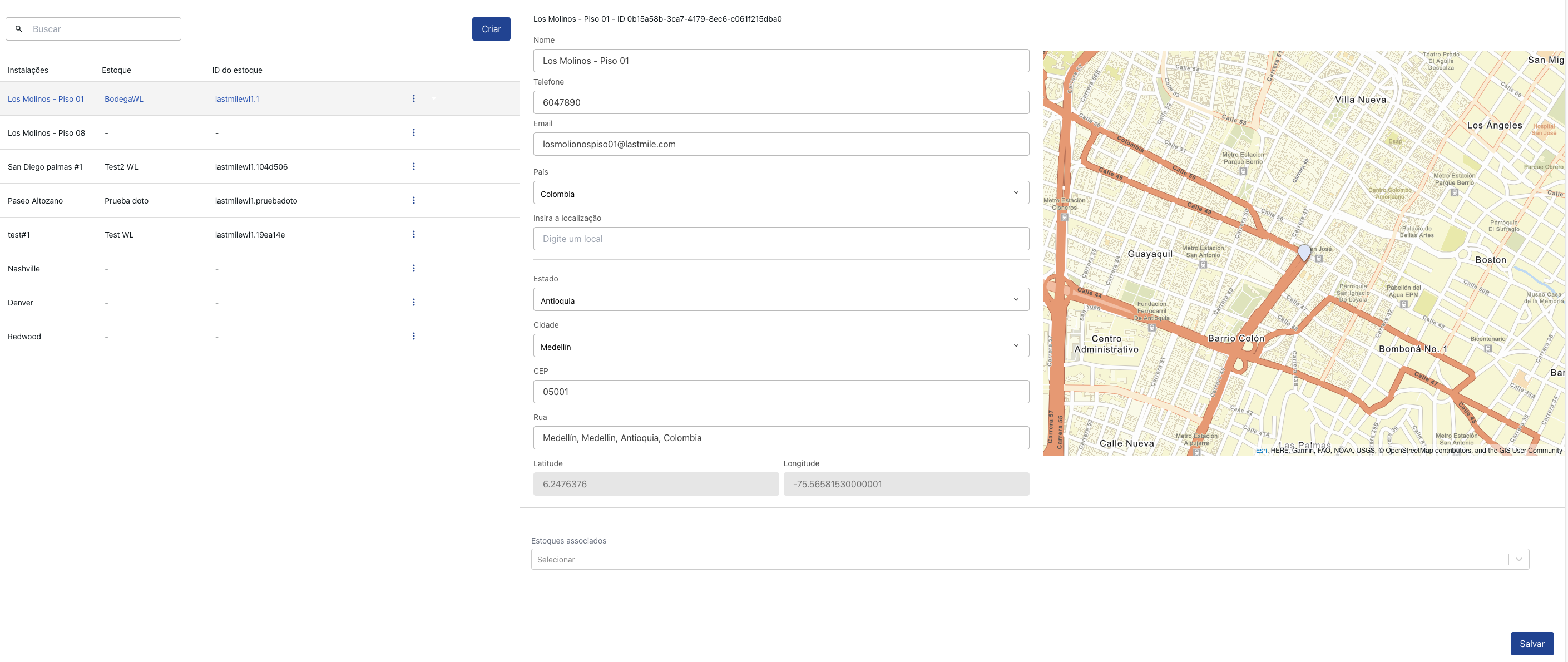 2. Preencha o formulário com as informações de localização da sua instalação. É obrigatório preencher os campos Rua, Cidade e Estado.