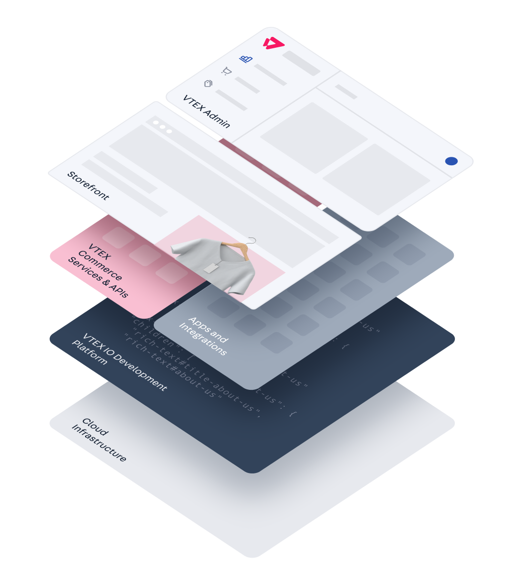 • Backend: O backend é a camada responsável por computar e processar todos os dados nescessários para executar as funcionalidades oferecidas por uma determinada aplicação. Na VTEX, o desenvolvimento de integrações e aplicações de backend se dá principalmente através do VTEX IO e das APIs da VTEX.