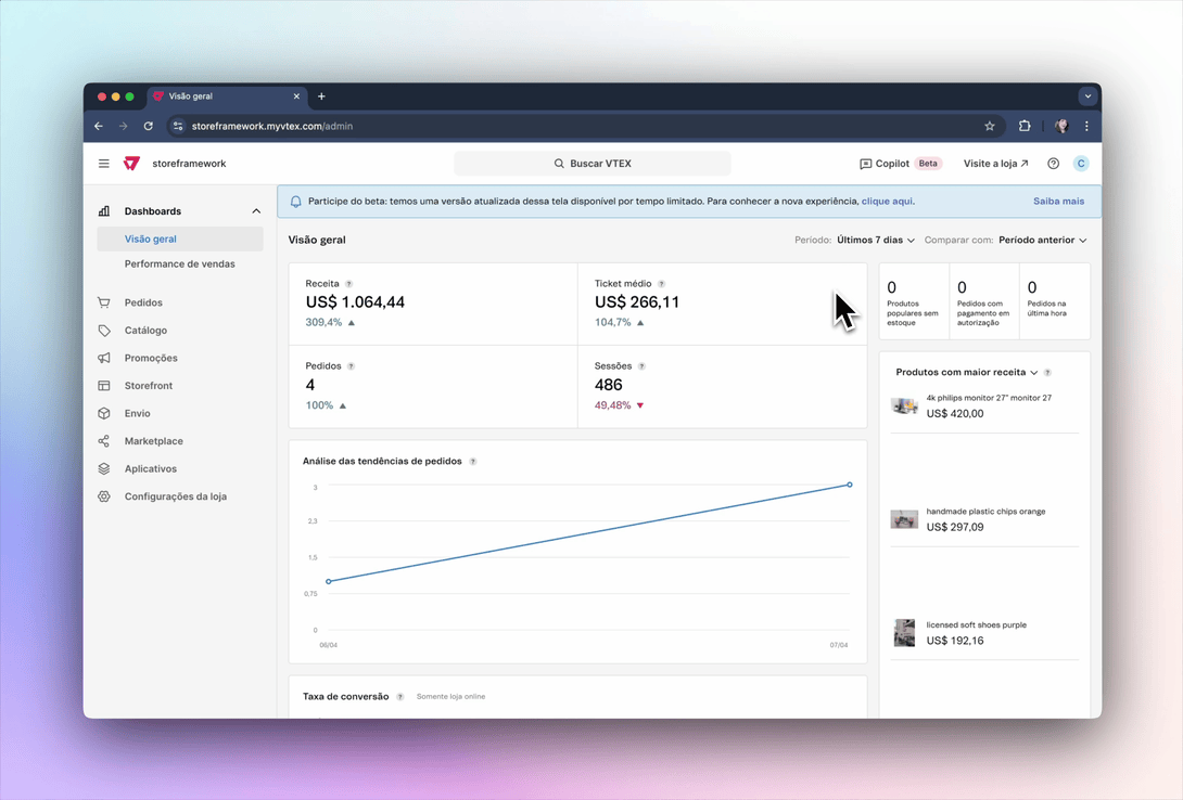 Solicite suporte à VTEX