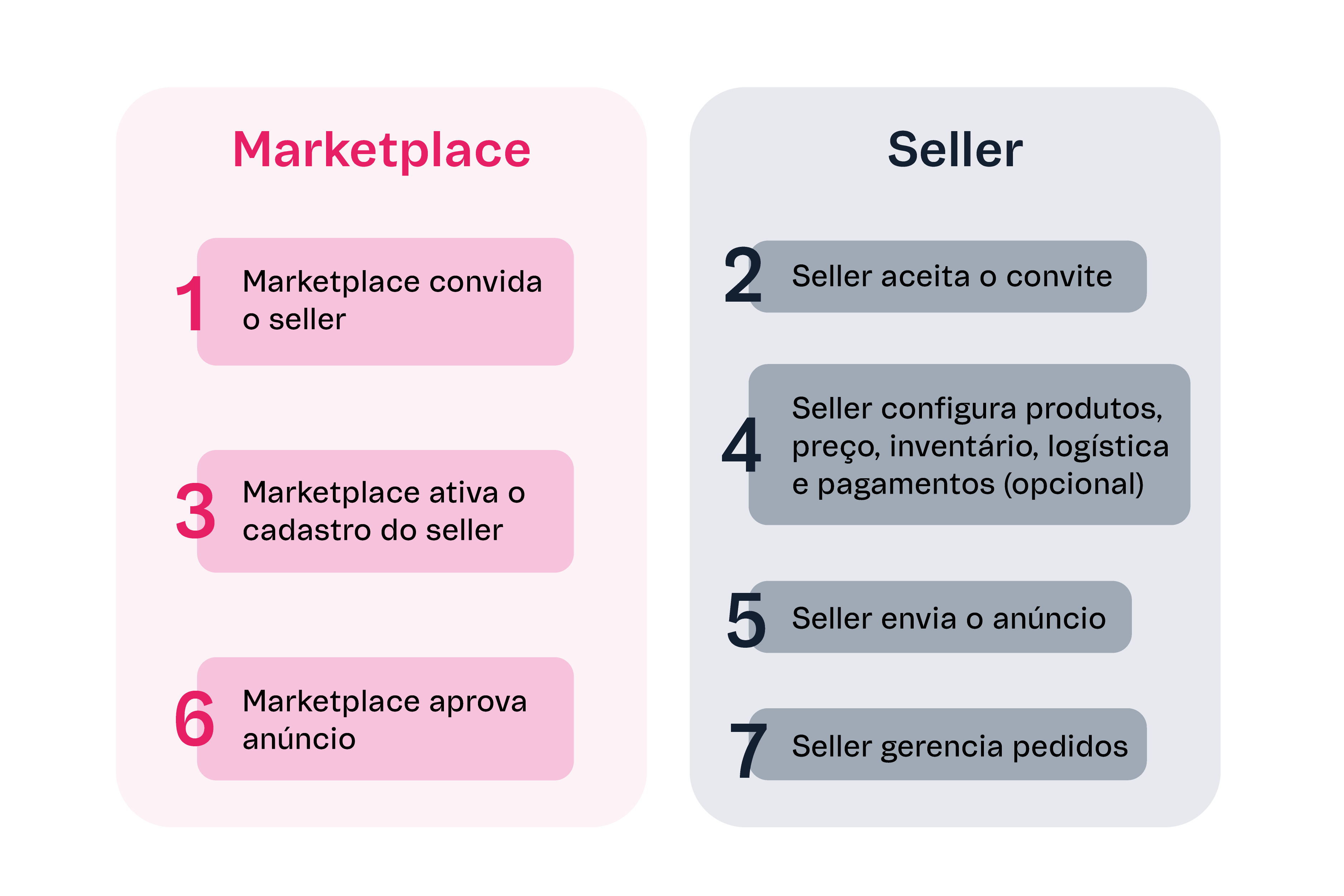 Nas próximas seções, as etapas atribuídas ao marketplace foram organizadas em: